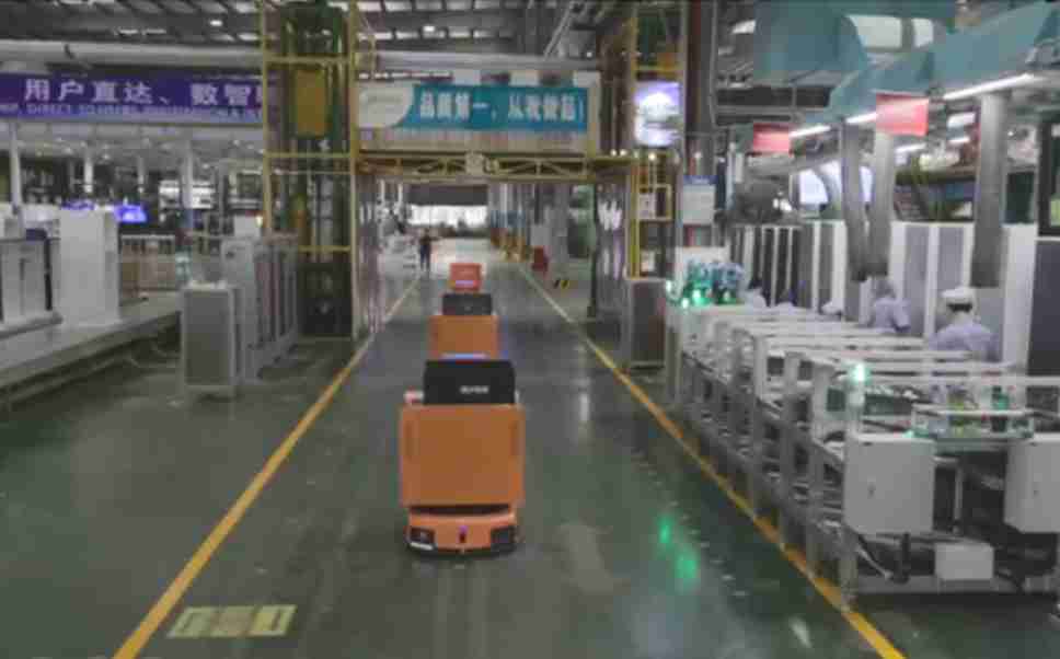 为车载冰箱物流配送打造的智能解决方案,,,包含产中物流通过潜伏举升AMR搬运至线边,,产后成品物流智能仓储,,,流程包含产中物流智能齐套入库,,,,线边安灯叫料AMR智能配送至线边,,,成品入库、、、出库,,通过无人堆高车机器人,,,,智能仓储管理替代人工作业管理,,,实现更高存储、、、、更高效率、、、、更具柔性化的解决方案。。。
